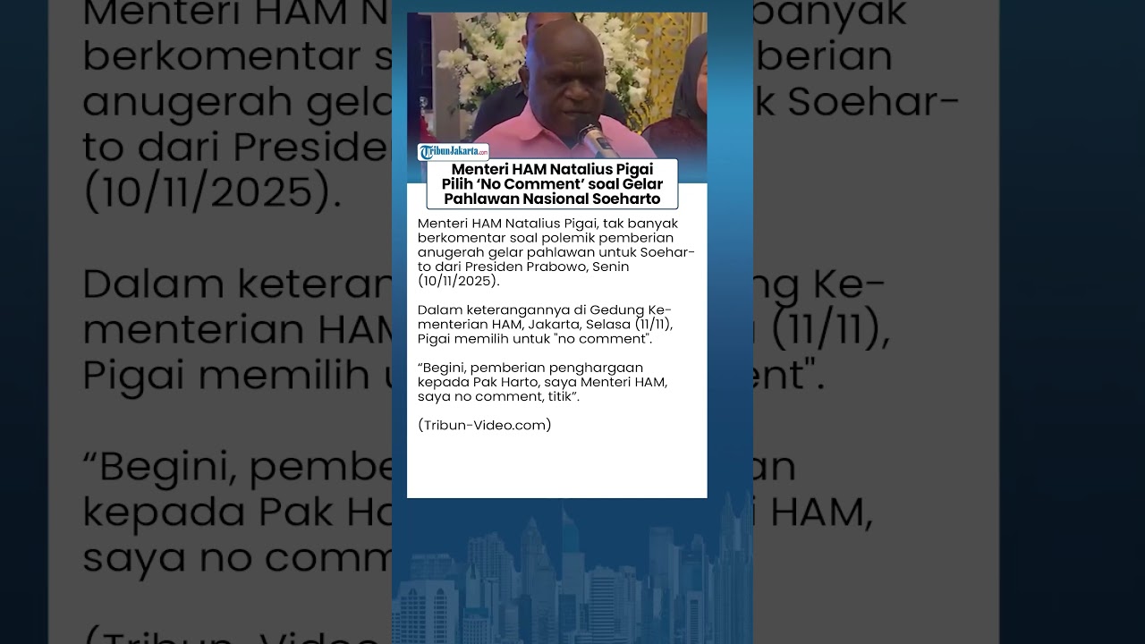 TRIBUN-VIDEO.COM - Menteri HAM Natalius Pigai, tak banyak berkomentar soal polemik pemberian anugerah gelar pahlawan untuk Soeharto dari Presiden Prabowo, Senin (10/11/2025).
