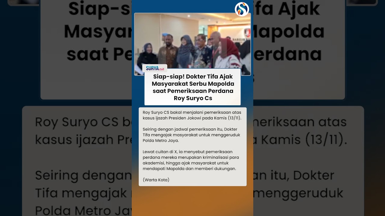 Artikel ini telah tayang di WartaKotalive.com dengan judul Diperiksa Perdana sebagai Tersangka, Dr Tifa Ajak Masyarakat Ramaikan Polda Metro Jaya