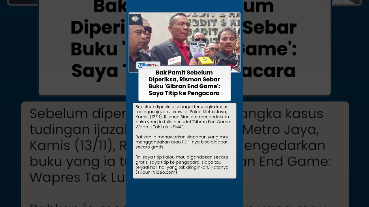 TRIBUN-VIDEO.COM - Bak pamit sebelum diperiksa sebagai tersangka kasus tudingan ijazah Presiden ke-7 RI Jokowi di Polda Metro Jaya, Kamis (13/11), Rismon Sianipar mengedarkan salah satu buku yang ia tulis berjudul 'Gibran end Game: Wapres Tak Lulus SMA".