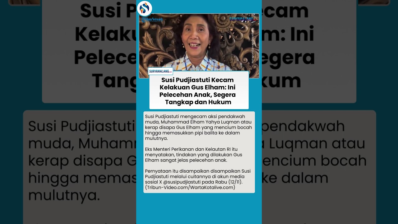 Artikel ini telah tayang di WartaKotalive.com dengan judul Susi Pudjiastuti Kecam Kelakuan Gus Elham: Jelas Pelecehan Anak!\