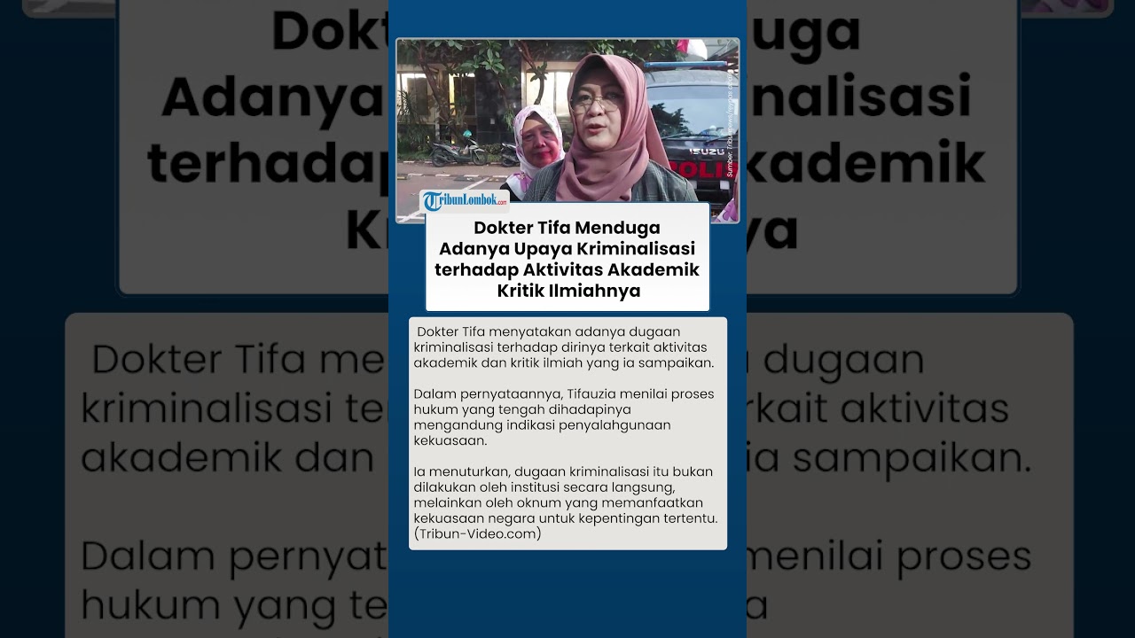 TRIBUN-VIDEO.COM - Dokter Tifa menyatakan adanya dugaan kriminalisasi terhadap dirinya terkait aktivitas akademik dan kritik ilmiah yang ia sampaikan.