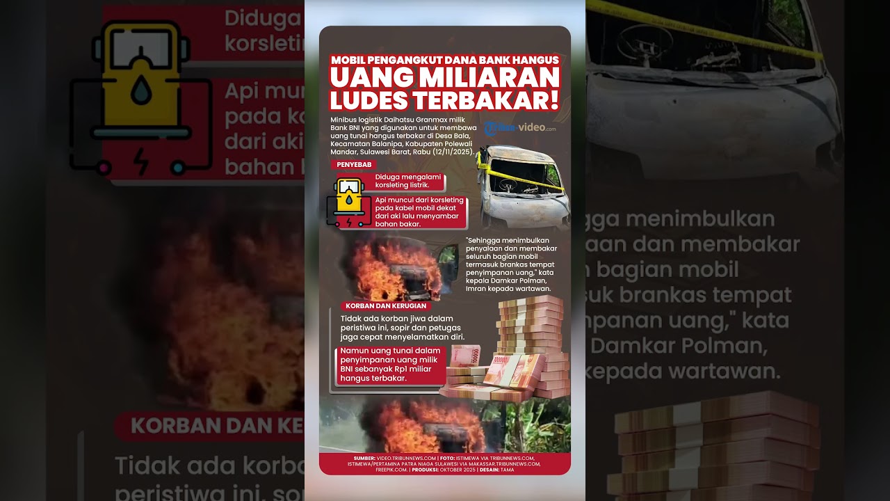 TRIBUN-VIDEO.COM - Minibus logistik Daihatsu Granmax milik Bank BNI yang digunakan untuk membawa uang tunai hangus terbakar di Desa Bala, Kecamatan Balanipa, Kabupaten Polewali Mandar (Polman), Sulawesi Barat (Sulbar), Rabu (12/11/2025).
