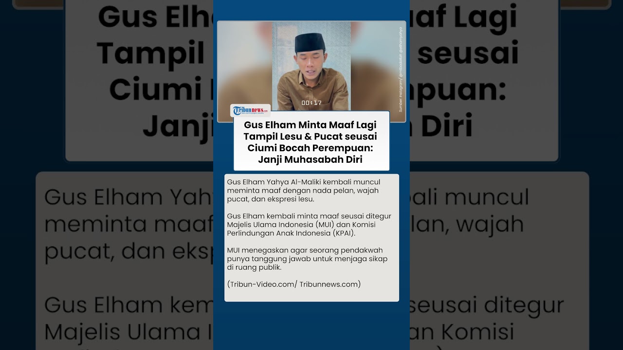 Gus Elham Yahya Luqman kembali minta maaf melalui video terbaru di akun Instagram @mt.ibadallah pada Rabu (12/11/2025) seusai ditegur Majelis Ulama Indonesia (MUI) dan Komisi Perlindungan Anak Indonesia (KPAI).