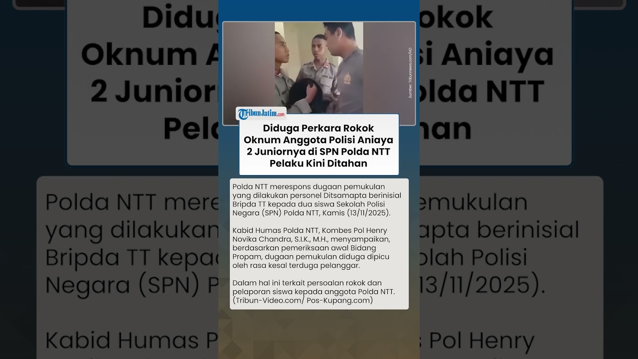 TRIBUN-VIDEO.COM - Polda Nusa Tenggara Timur (NTT) merespons dugaan pemukulan yang dilakukan personel Ditsamapta berinisial Bripda TT kepada dua siswa Sekolah Polisi Negara (SPN) Polda NTT, Kamis (13/11/2025).