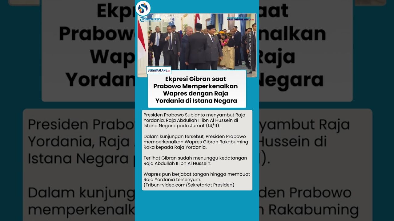 Dalam kunjungan tersebut, Presiden Prabowo memperkenalkan Wapres Gibran Rakabuming Raka kepada Raja Yordania.