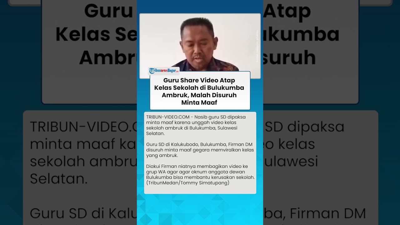 TRIBUN-VIDEO.COM - Nasib guru SD dipaksa minta maaf karena unggah video kelas sekolah ambruk di Bulukumba, Sulawesi Selatan.