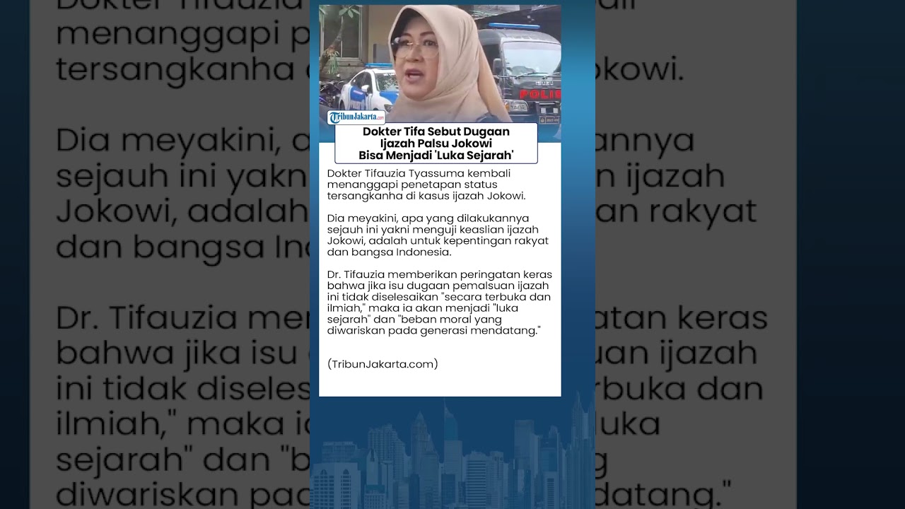 Dr. Tifauzia memberikan peringatan keras bahwa jika isu dugaan pemalsuan ijazah ini tidak diselesaikan "secara terbuka dan ilmiah," maka ia akan menjadi "luka sejarah" dan "beban moral yang diwariskan pada generasi mendatang."