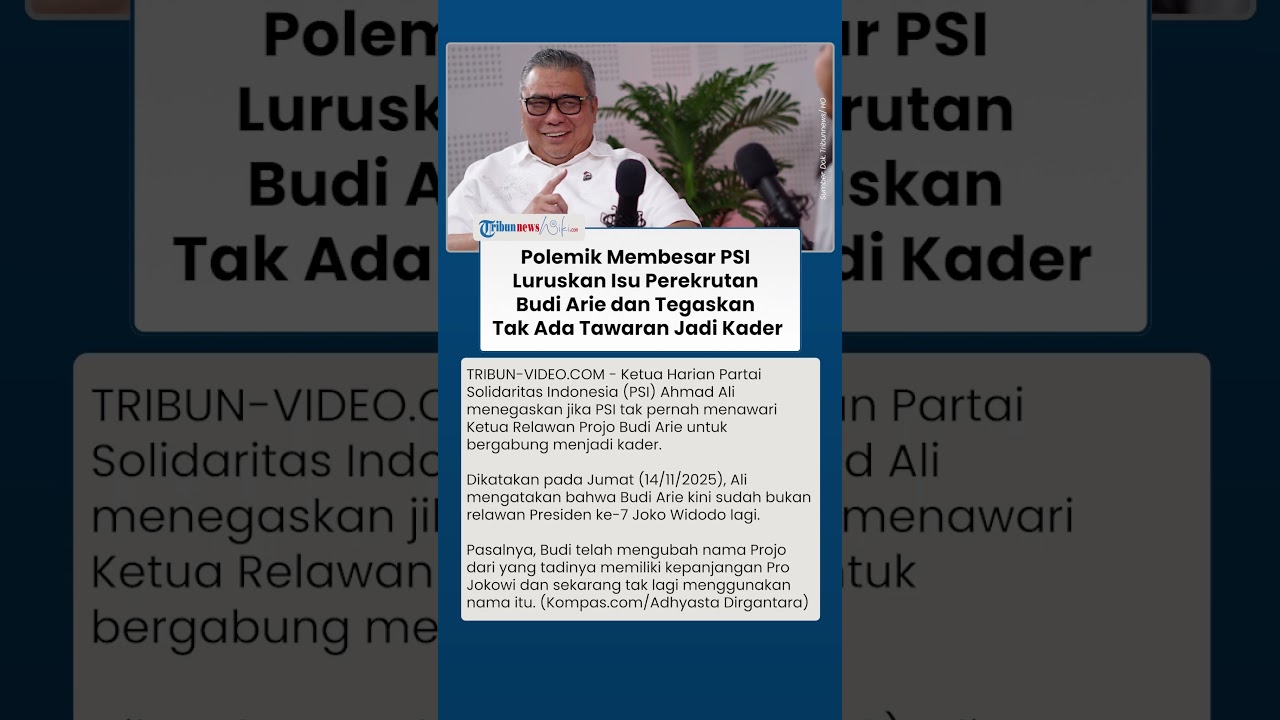 TRIBUN-VIDEO.COM - Ketua Harian Partai Solidaritas Indonesia (PSI) Ahmad Ali menegaskan jika PSI tak pernah menawari Ketua Relawan Projo Budi Arie untuk bergabung menjadi kader.