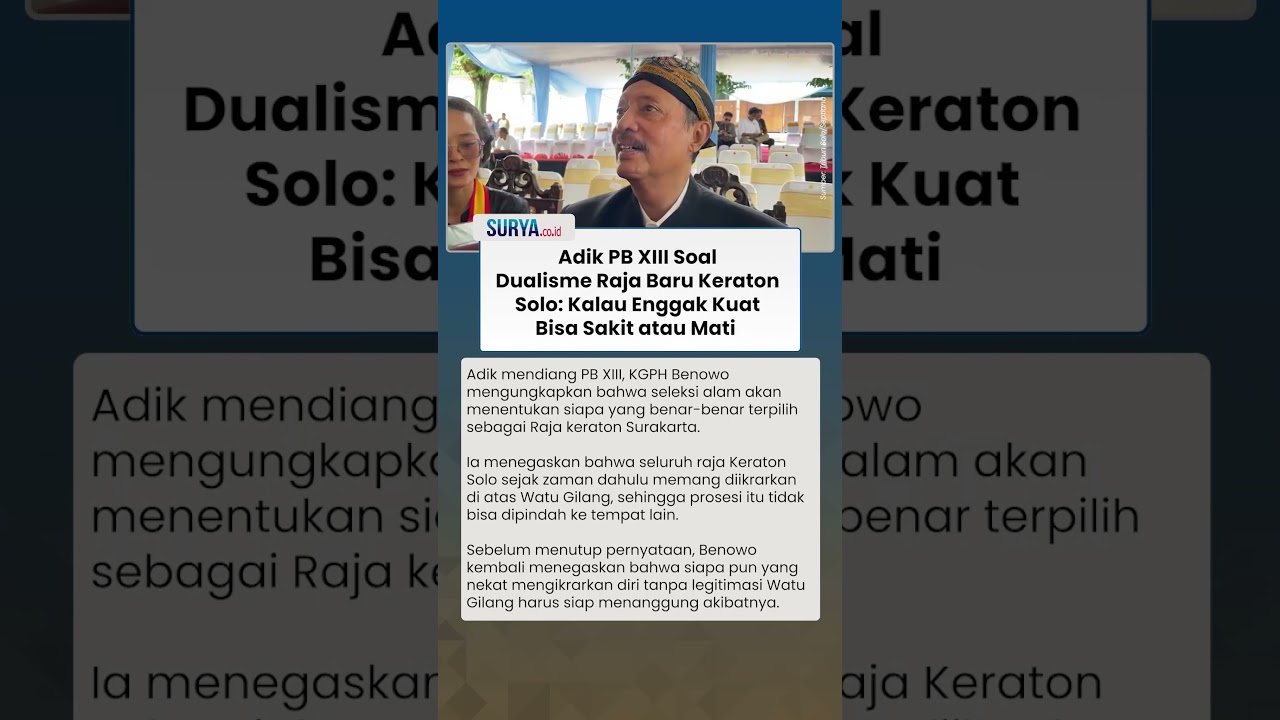 Artikel ini telah tayang di TribunSolo.com dengan judul Suksesi Keraton Solo Makin Panas, Adik PB XIII Benowo Tegaskan Putra Tertua Tidak Otomatis Jadi Raja