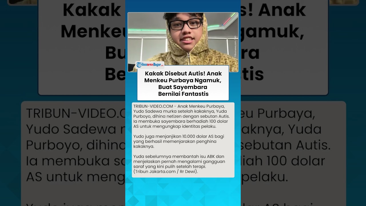 Artikel ini telah tayang di TribunJakarta.com dengan judul Kakak Disebut 'Autis', Yudo Sadewa Anak Purbaya Buat Sayembara Berhadiah Fantastis Buat Cari Pelaku
