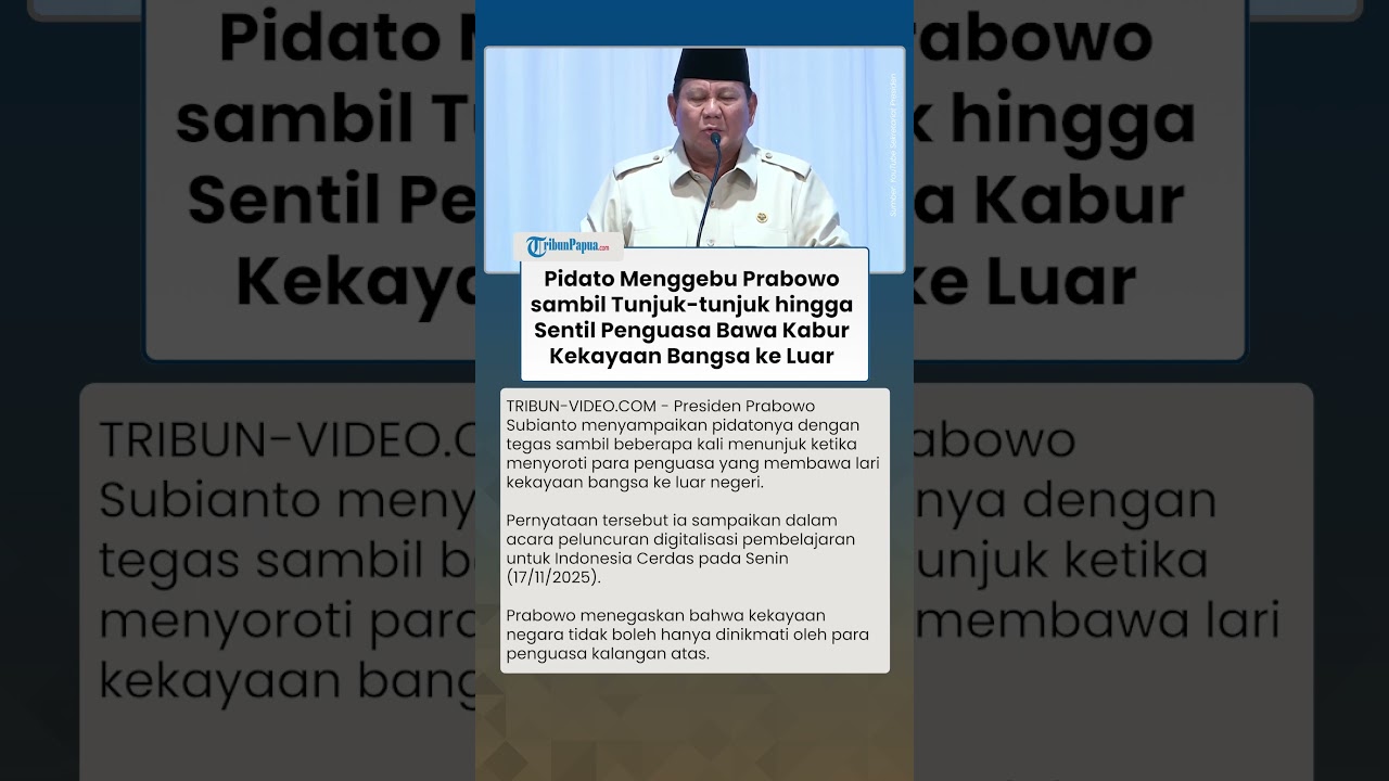 TRIBUN-VIDEO.COM - Presiden Prabowo Subianto menyampaikan pidatonya dengan tegas dan menunjuk-tunjuk tangan ketika menyinggung penguasa bawa kabur kekayaan bangsa ke luar negeri.