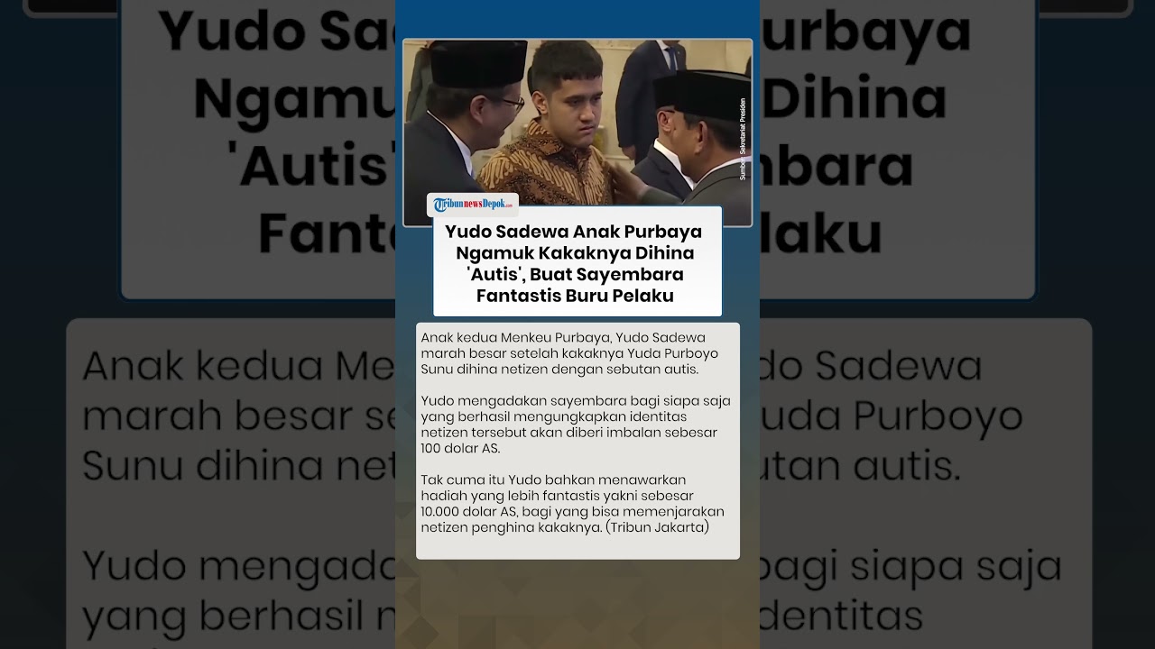 Artikel ini telah tayang di TribunJakarta.com dengan judul Kakak Disebut 'Autis', Yudo Sadewa Anak Purbaya Buat Sayembara Berhadiah Fantastis Buat Cari Pelaku