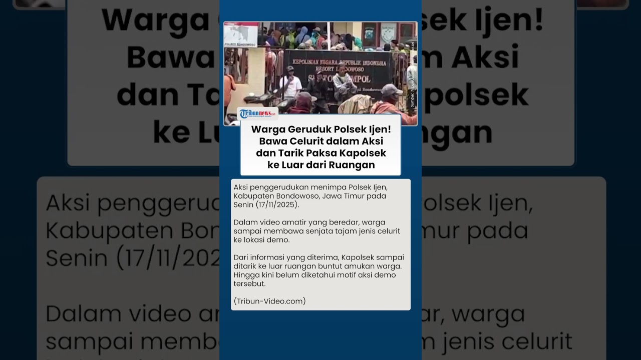 TRIBUN-VIDEO.COM - Aksi penggerudukan menimpa Polsek Ijen, Kabupaten Bondowoso, Jawa Timur pada Senin (17/11/2025).