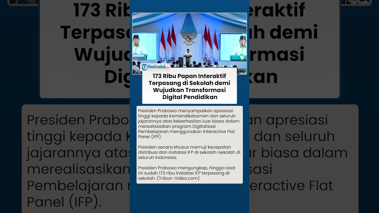 TRIBUN-VIDEO.COM - Presiden Prabowo menyampaikan apresiasi tinggi kepada Kemendikdasmen dan seluruh jajarannya atas keberhasilan luar biasa dalam merealisasikan program Digitalisasi Pembelajaran menggunakan Interactive Flat Panel (IFP).
