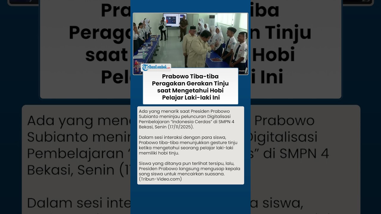 TRIBUN-VIDEO.COM - Ada yang menarik saat Presiden Prabowo Subianto meninjau peluncuran Digitalisasi Pembelajaran “Indonesia Cerdas” di SMPN 4 Bekasi, Senin (17/11/2025).