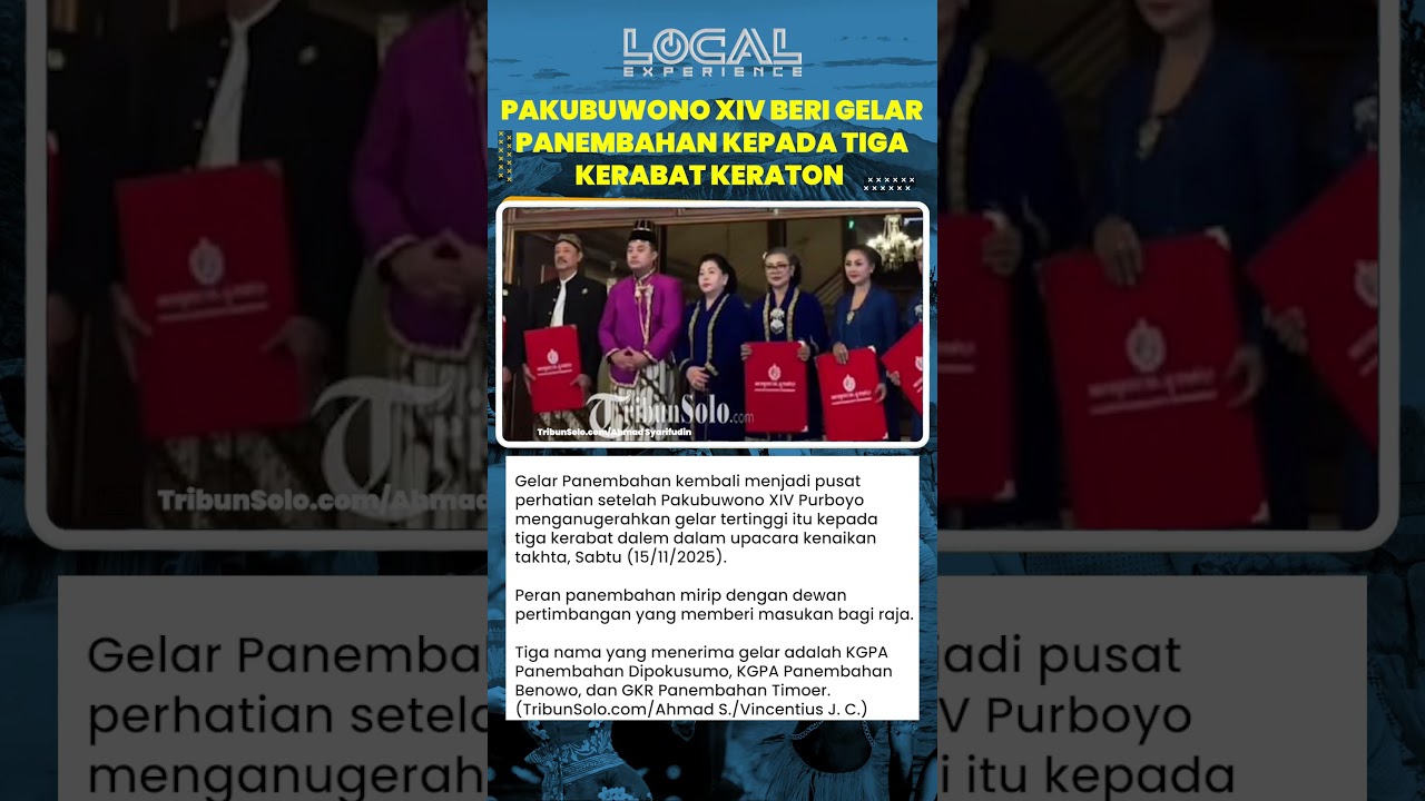 TRIBUN-VIDEO.COM - Gelar Panembahan kembali menjadi pusat perhatian setelah Pakubuwono XIV Purboyo menganugerahkan gelar tertinggi itu kepada tiga kerabat dalem dalam upacara kenaikan takhta, Sabtu (15/11/2025).
