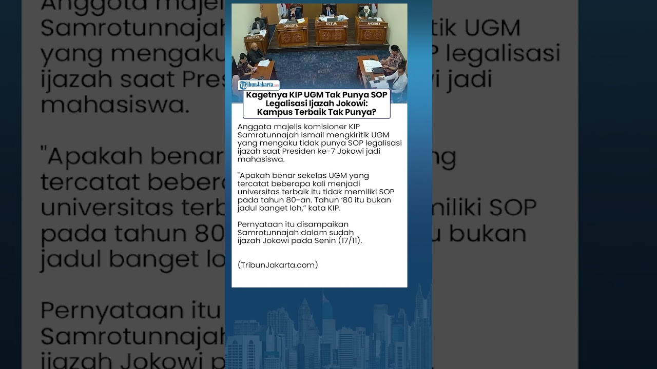 TRIBUN-VIDEO.COM - Anggota majelis komisioner KIP Samrotunnajah Ismail mengkiritik UGM yang mengaku tidak punya SOP legalisasi ijazah saat Presiden ke-7 Jokowi jadi mahasiswa.