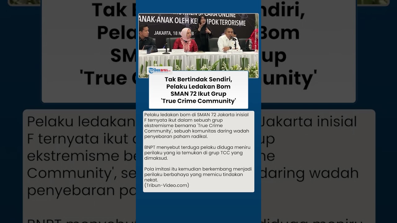TRIBUN-VIDEO.COM - Pelaku ledakan bom di SMAN 72 Jakarta inisial F ternyata ikut dalam sebuah grup ekstremisme bernama 'True Crime Community', sebuah komunitas daring wadah penyebaran paham radikal.