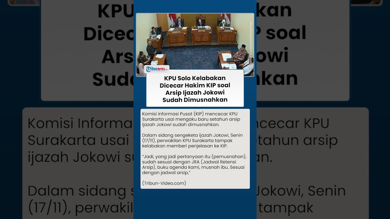 TRIBUN-VIDEO.COM - Komisi Informasi Pusat (KIP) mencecar KPU Surakarta usai mengaku baru setahun arsip ijazah Jokowi sudah dimusnahkan.