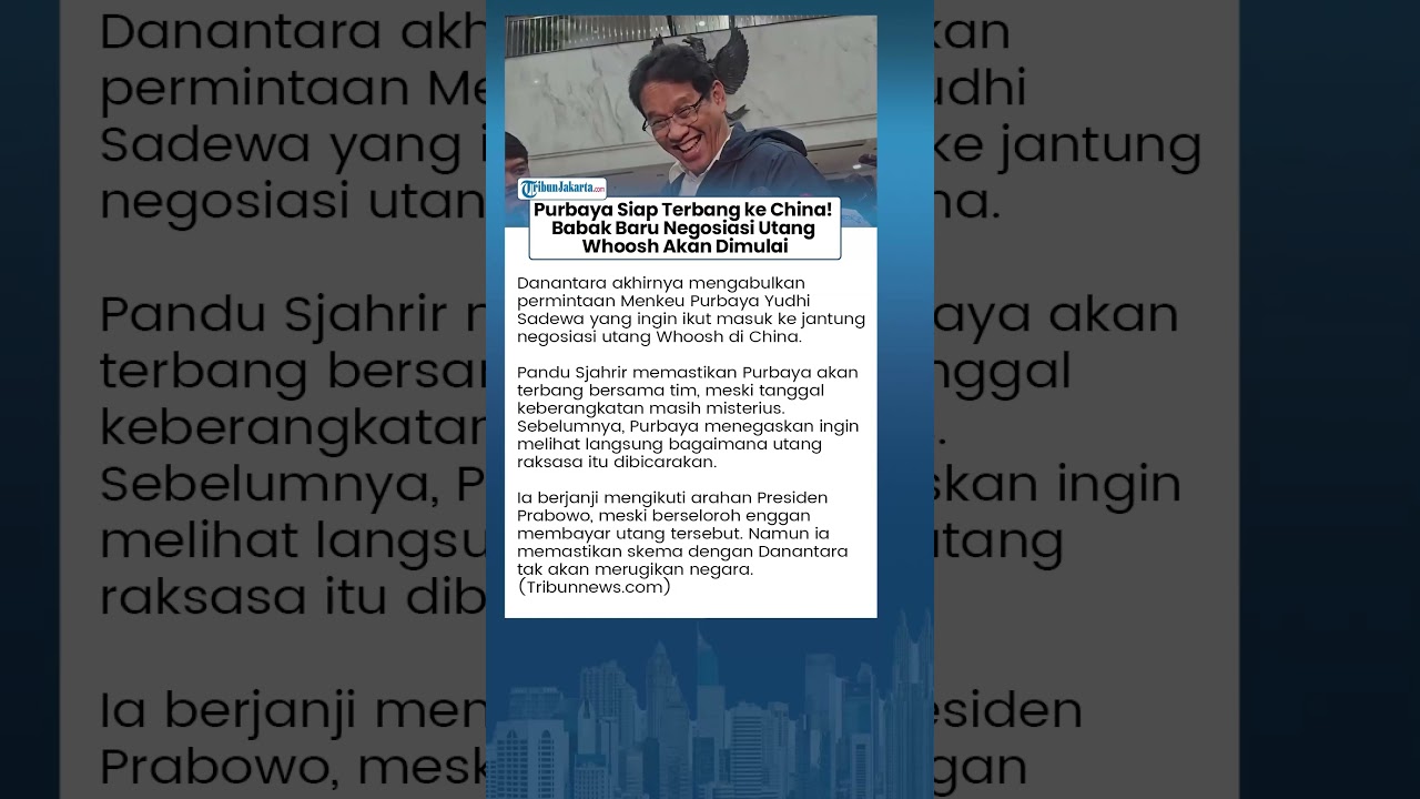 TRIBUN-VIDEO.COM - Danantara mengabulkan permintaan Menteri Keuangan, Purbaya Yudhi Sadewa, yang ingin dilibatkan dalam proses negosiasi utang proyek Kereta Cepat Jakarta-Bandung (KCJB) atau Whoosh dengan China.