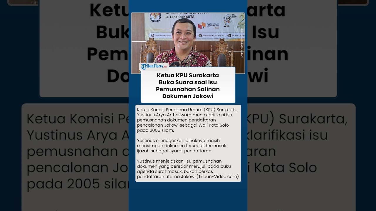 TRIBUN-VIDEO.COM - Ketua Komisi Pemilihan Umum (KPU) Surakarta, Yustinus Arya Artheswara mengklarifikasi isu pemusnahan dokumen pendaftaran pencalonan Jokowi sebagai Wali Kota Solo pada 2005 silam.
