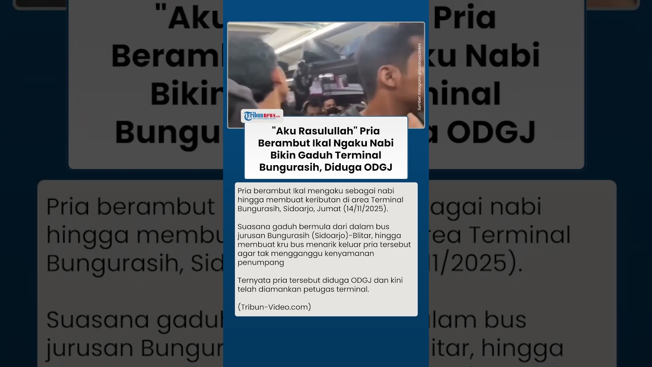TRIBUN-VIDEO.COM - Pria berambut Ikal mengaku sebagai nabi hingga membuat keributan di area Terminal Bungurasih, Sidoarjo, Jumat (14/11/2025).