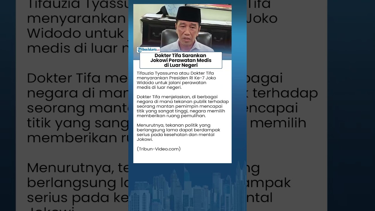 Artikel ini telah tayang di Tribunnews.com dengan judul Sarankan Jokowi Jalani Perawatan Medis di Luar Negeri, Dokter Tifa Singgung Tekanan Publik