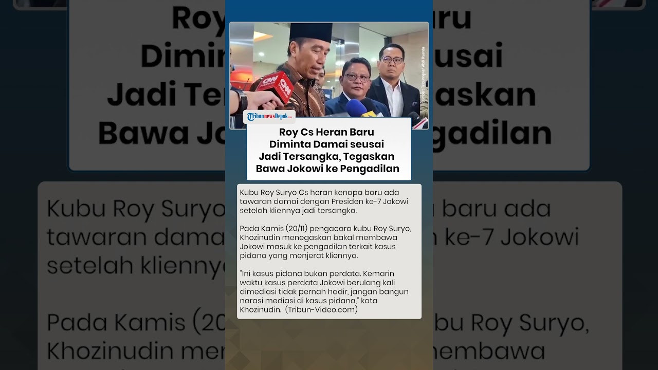 Pada Kamis (20/11) pengacara kubu Roy Suryo, Khozinudin menegaskan bakal membawa Jokowi masuk ke pengadilan terkait kasus pidana yang menjerat kliennya.
