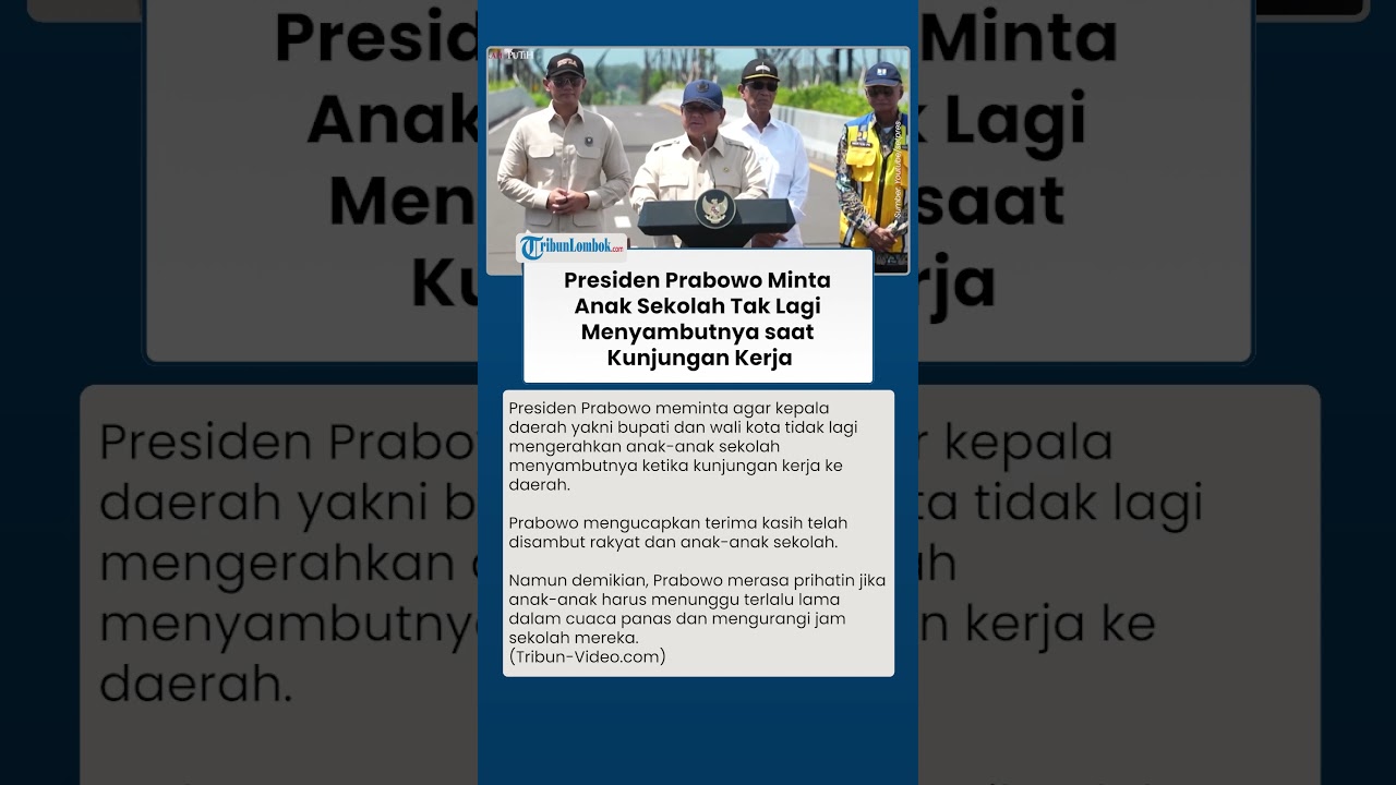 TRIBUN-VIDEO.COM - Presiden Prabowo meminta agar kepala daerah yakni bupati dan wali kota tidak lagi mengerahkan anak-anak sekolah menyambutnya ketika kunjungan kerja ke daerah.
