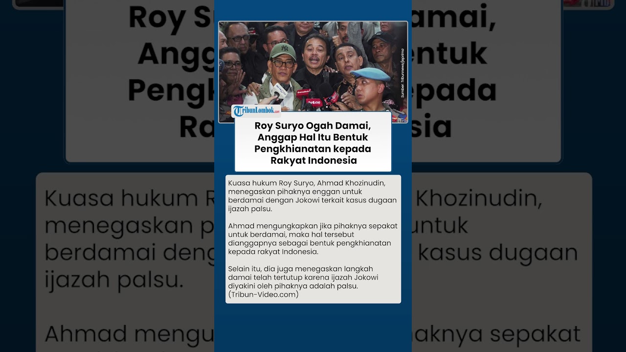 TRIBUN-VIDEO.COM - Kuasa hukum Roy Suryo, Ahmad Khozinudin, menegaskan pihaknya enggan untuk berdamai dengan Jokowi terkait kasus dugaan ijazah palsu.