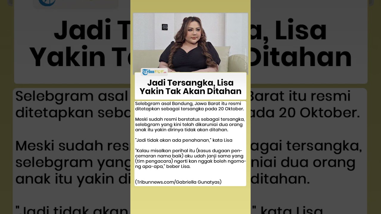 TRIBUN-VIDEO.COM - Selebgram 25 tahun, Lisa Mariana meyakini dirinya tidak akan ditahan meski berstatus tersangka dalam kasus dugaan pencemaran nama baik.