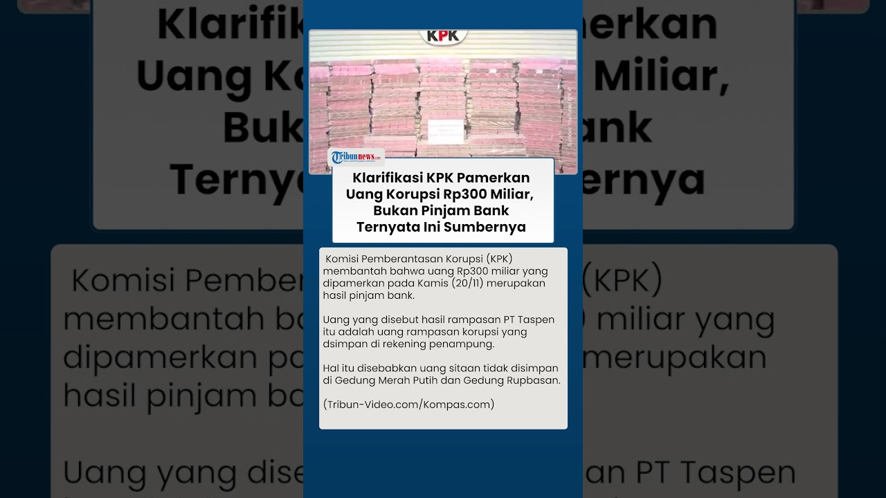 Artikel ini telah tayang di Kompas.com dengan judul KPK Klarifikasi Uang Rp 300 M yang Dipamerkan Bukan Pinjam dari Bank, tetapi...