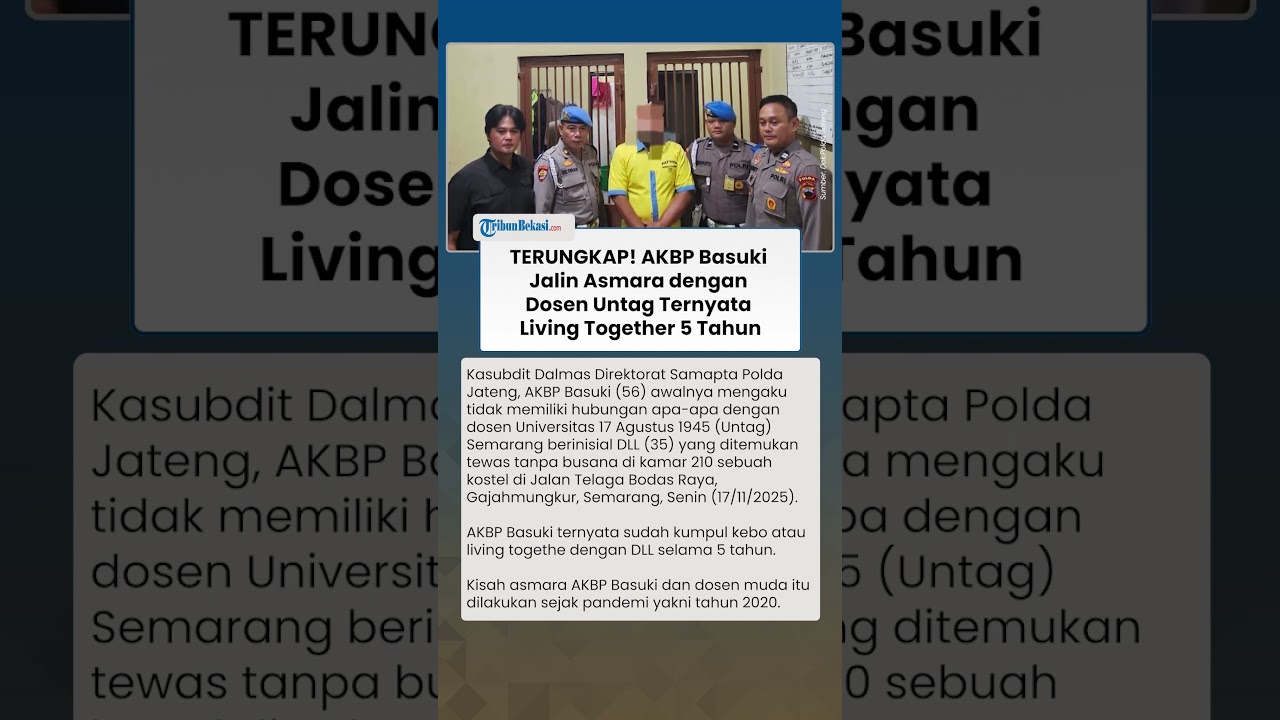 TRIBUN-VIDEO.COM - Kasubdit Dalmas Direktorat Samapta Polda Jateng, AKBP Basuki (56) awalnya mengaku tidak memiliki hubungan apa-apa dengan dosen Universitas 17 Agustus 1945 (Untag) Semarang berinisial DLL (35) yang ditemukan tewas tanpa busana di kamar 210 sebuah kostel di Jalan Telaga Bodas Raya, Gajahmungkur, Semarang, Senin (17/11/2025).