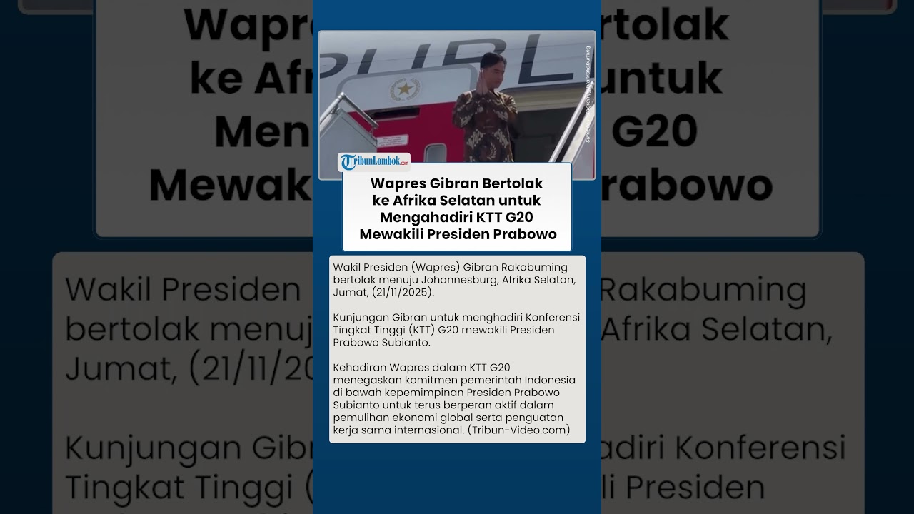 TRIBUN-VIDEO.COM - Wakil Presiden (Wapres) Gibran Rakabuming bertolak menuju Johannesburg, Afrika Selatan, Jumat, (21/11/2025).