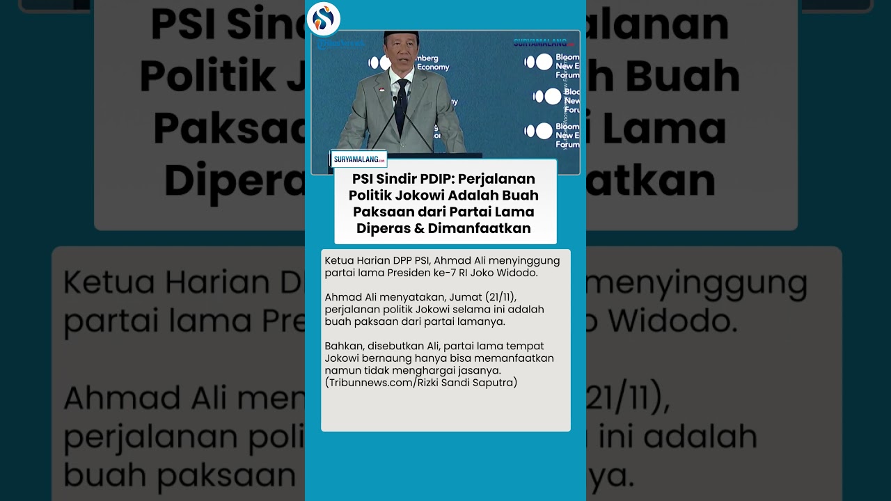 TRIBUN-VIDEO.COM - Ketua Harian DPP Partai Solidaritas Indonesia (PSI) Ahmad Ali menyinggung partai lama Presiden ke-7 RI Joko Widodo, PDIP.
