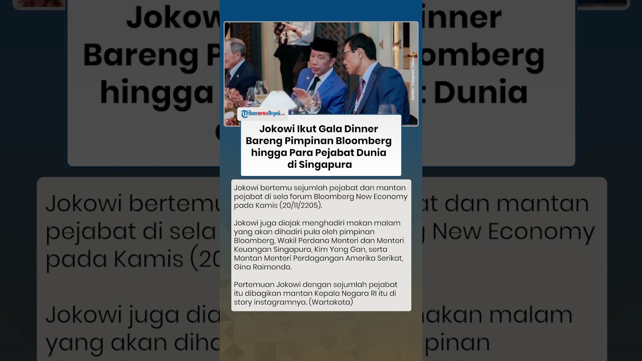 Pada Kamis (20/11/2025), Jokowi juga diajak menghadiri makan malam yang akan dihadiri pula oleh pimpinan Bloomberg, Wakil Perdana Menteri dan Menteri Keuangan Singapura, Kim Yong Gan, serta Mantan Menteri Perdagangan Amerika Serikat, Gina Raimondo.