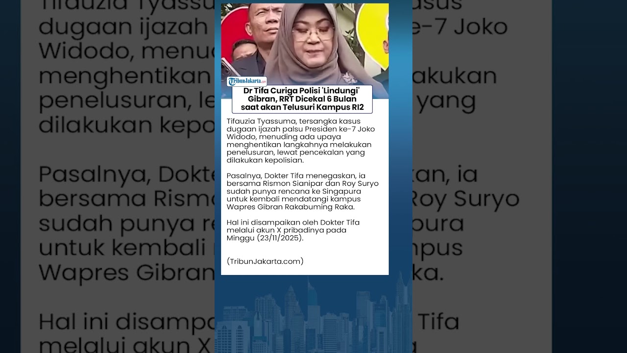 TRIBUN-VIDEO.COM - Tifauzia Tyassuma, tersangka kasus dugaan ijazah palsu Presiden ke-7 Joko Widodo, menuding ada upaya menghentikan langkahnya melakukan penelusuran, lewat pencekalan yang dilakukan kepolisian.