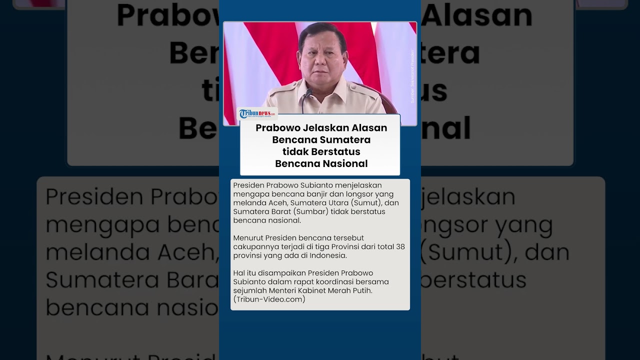 TRIBUN-VIDEO.COM, JAKARTA - Presiden Prabowo Subianto menjelaskan mengapa bencana banjir dan longsor yang melanda Aceh, Sumatera Utara (Sumut), dan Sumatera Barat (Sumbar) tidak berstatus bencana nasional.