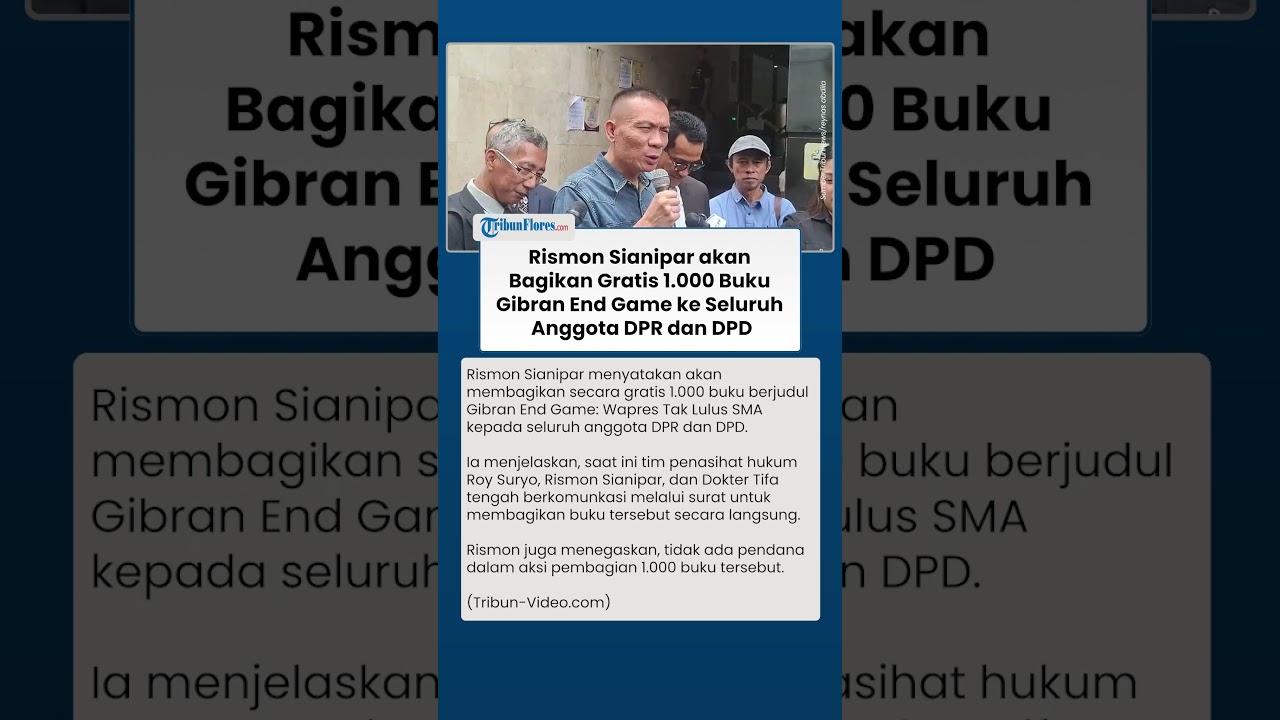 TRIBUN-VIDEO.COM - Rismon Sianipar menyatakan akan membagikan secara gratis 1.000 buku berjudul Gibran End Game: Wapres Tak Lulus SMA kepada seluruh anggota DPR dan DPD.