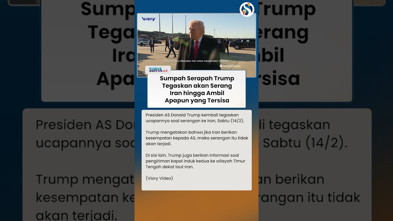 TRIBUN-VIDEO.COM - Presiden AS Donald Trump kembali tegaskan pernyataannya terkait serangan ke Iran, Sabtu (14/2).