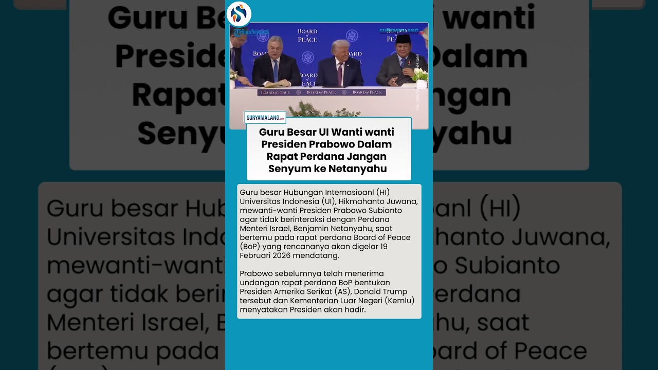 TRIBUN-VIDEO.COM - Guru besar Hubungan Internasioanl (HI) Universitas Indonesia (UI), Hikmahanto Juwana, mewanti-wanti Presiden Prabowo Subianto agar tidak berinteraksi dengan Perdana Menteri Israel, Benjamin Netanyahu, saat bertemu pada rapat perdana Board of Peace (BoP) yang rencananya akan digelar 19 Februari 2026 mendatang.