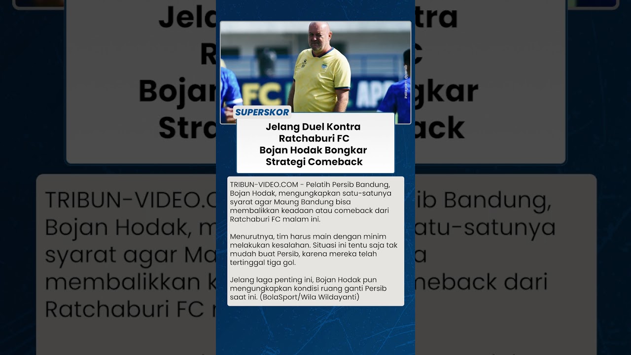 TRIBUN-VIDEO.COM - Pelatih Persib Bandung, Bojan Hodak, mengungkapkan satu-satunya syarat agar Maung Bandung bisa membalikkan keadaan atau comeback dari Ratchaburi FC malam ini.