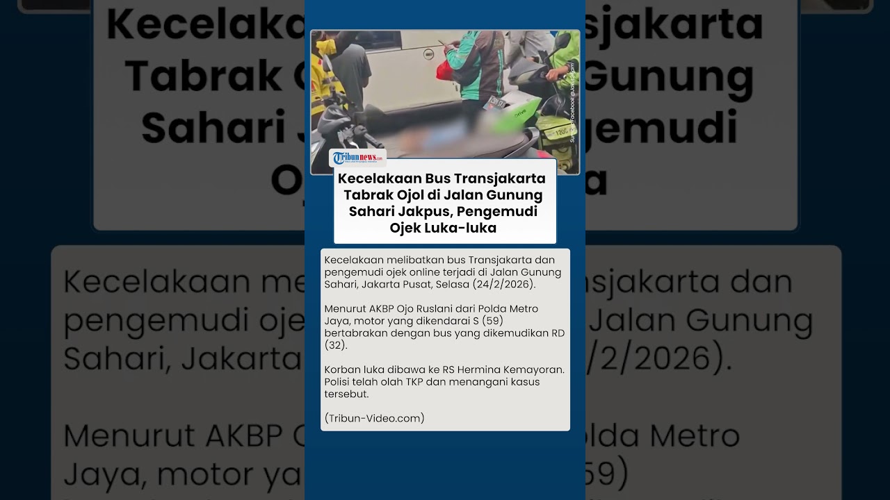 TRIBUN-VIDEO.COM - Kecelakaan melibatkan bus Transjakarta dan pengemudi ojek online terjadi di Jalan Gunung Sahari, Jakarta Pusat, Selasa (24/2/2026).