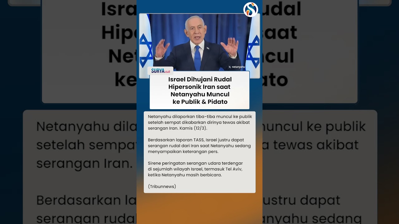 Kemunculan Netanyahu ini pun hampir bersamaan dengan pernyataan perdana Pemimpin Tertinggi Iran Mojtaba Khamenei di Teheran.