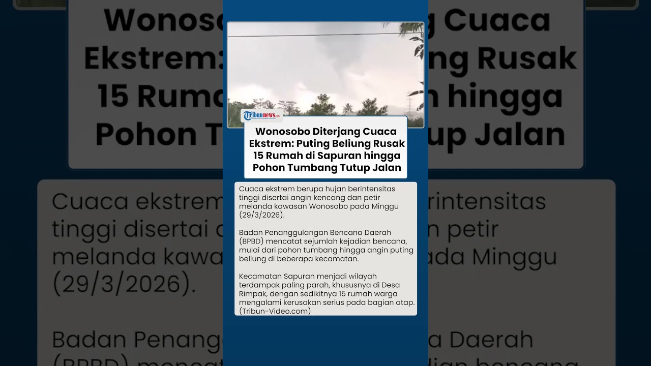 TRIBUN-VIDEO.COM - Cuaca ekstrem berupa hujan berintensitas tinggi disertai angin kencang dan petir melanda kawasan Wonosobo pada Minggu (29/3/2026).