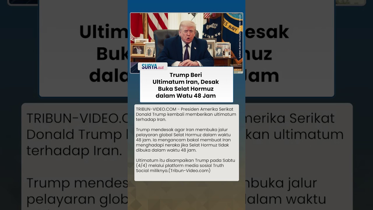 TRIBUN-VIDEO.COM - Presiden Amerika Serikat Donald Trump memberikan ultimatum keras kepada Iran dengan mendesak pembukaan kembali jalur pelayaran global Selat Hormuz dalam waktu 48 jam.