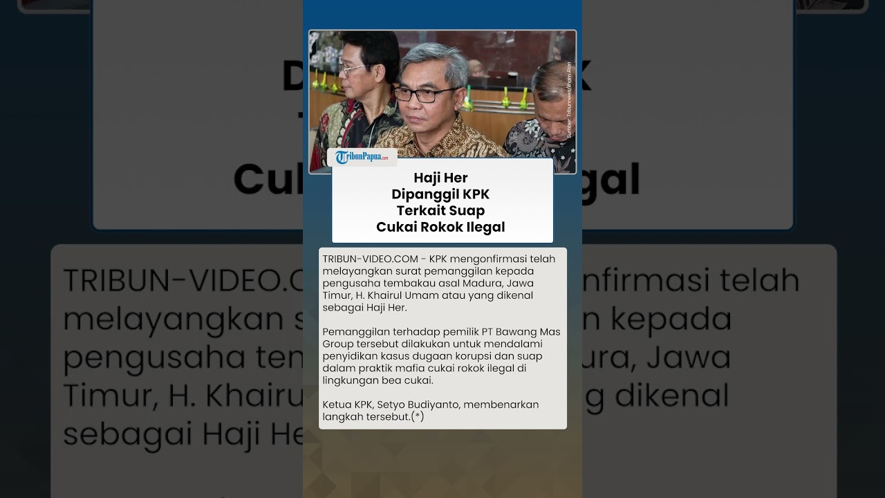 TRIBUN-VIDEO.COM - Komisi Pemberantasan Korupsi (KPK) mengonfirmasi telah melayangkan surat pemanggilan kepada pengusaha tembakau asal Madura, Jawa Timur, H. Khairul Umam atau yang dikenal sebagai Haji Her.
