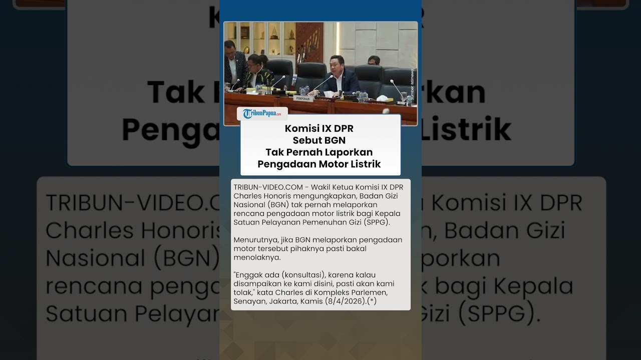 TRIBUN-VIDEO.COM - Wakil Ketua Komisi IX DPR Charles Honoris mengungkapkan, Badan Gizi Nasional (BGN) tak pernah melaporkan rencana pengadaan motor listrik bagi Kepala Satuan Pelayanan Pemenuhan Gizi (SPPG).