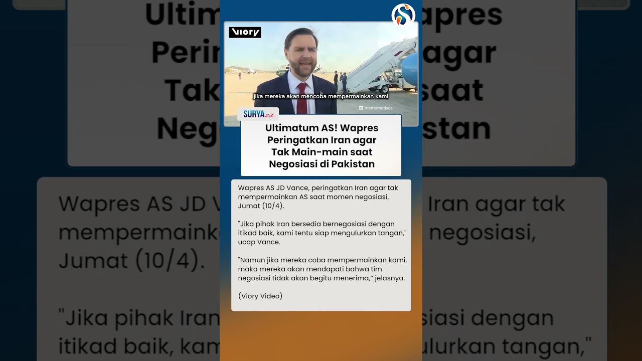 TRIBUN-VIDEO.COM- Wapres AS JD Vance, peringatkan Iran agar tak mempermainkan AS saat momen negosiasi, Jumat (10/4).