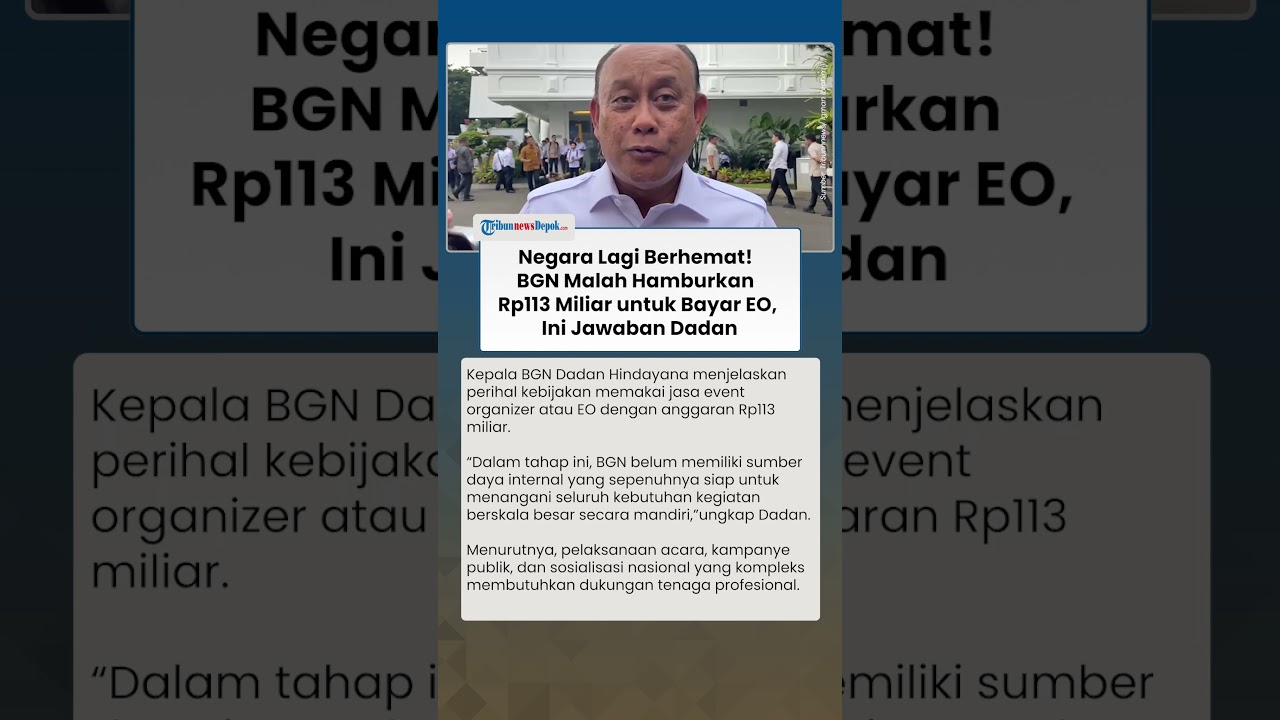 TRIBUN-VIDEO.COM - Kepala BGN Dadan Hindayana menjelaskan perihal kebijakan memakai jasa event organizer atau EO dengan anggaran Rp113 miliar.